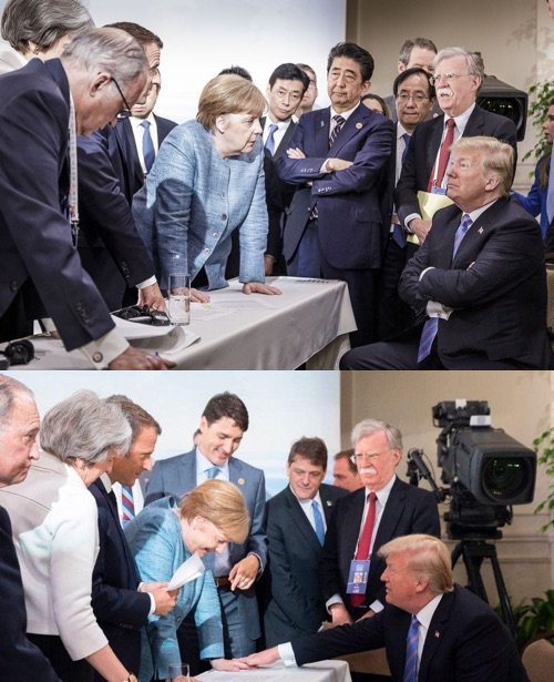 Un esempio del potere assertivo della fotografia. Questo tweet non è pro/contro (considero Trump agghiacciante), ma solo uno stimolo alla riflessione. Al vertice NATO di Brussel, è stata scattata una foto ormai “iconica”, che ben rappresenta non solo gli umori ma anche le posizioni politiche dei leader coinvolti. È, secondo me, una foto bellissima. Però non tutto quel che dice è vero e non dice tutto quel che è vero. Ha girato molto meno una seconda foto scattata nella stessa circostanza che ha un tono completamente diverso.